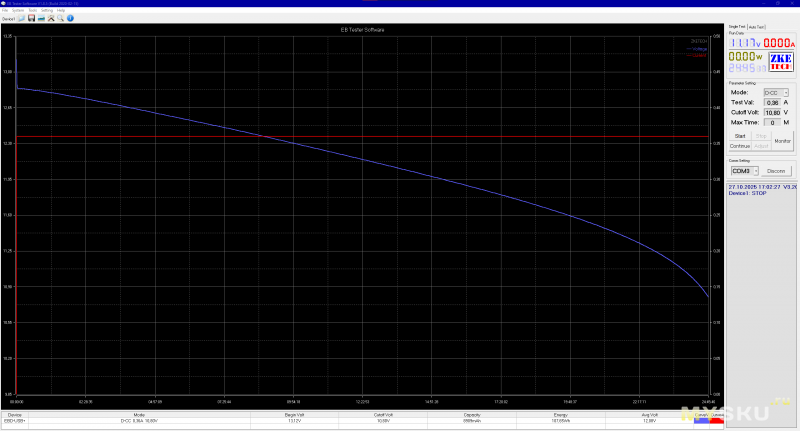 4. Разряд током 0.36 А до 10.8 В для определения ёмкости;