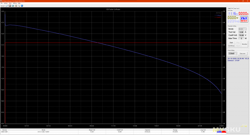 7. Разряд током 25 А до 10.8 В для определения времени работы и ёмкости в режиме ИБП.