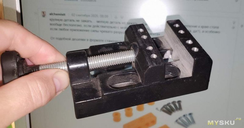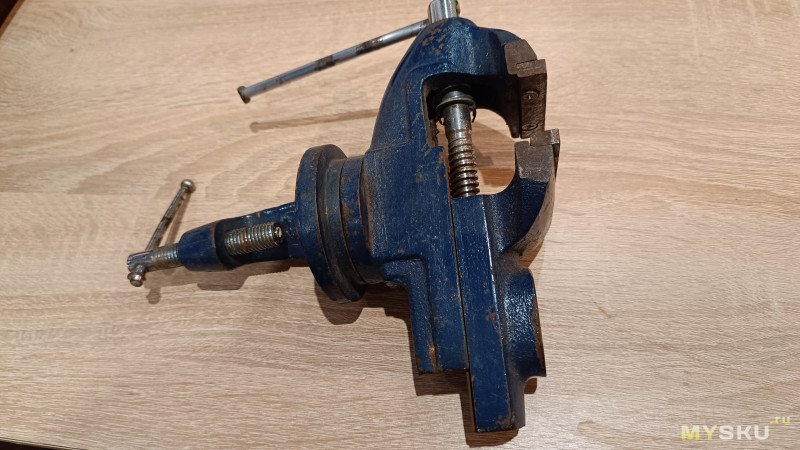 Но в отзывах всё же жалуются, что она при сильном зажиме лопается. В защиту тисков скажу, что для реальных слесарных работ использовать их не стоит.