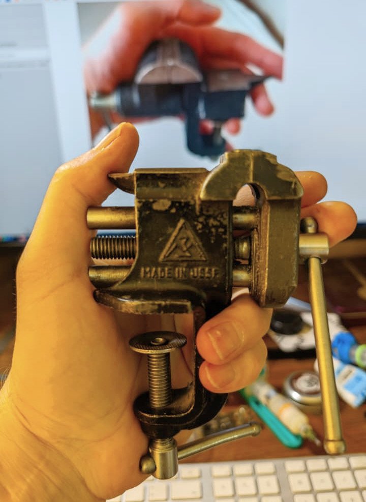 Тиски действительно миниатюрные, но впечатление какой-то уж очень хрупкой вещи он не производят. Тиски полностью металлические.