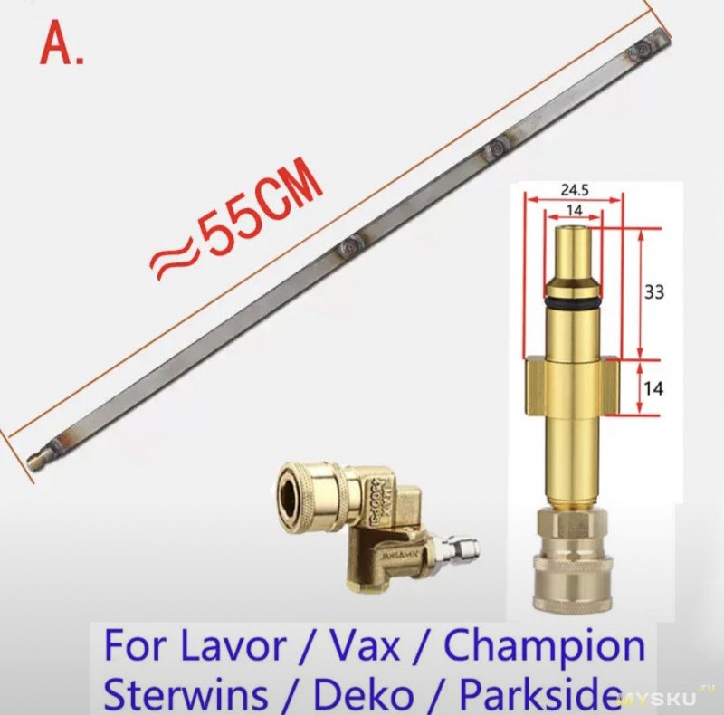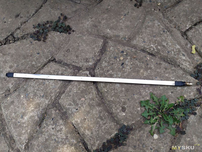 Представляете какая нагрузка получается с таким рычагом на место соединения насадки к пластиковому выходу пистолета, а если случайно где-нибудь зацепишься? Я как-то уже ломал выход такой мойки слегка ударившись кончиком заводского удлинителя за дверь, а тут плюс дополнительных 60 см и массы, все идет на одну точку… короче опаснаядля пистолета приспособа получается, работать надо аккуратно.