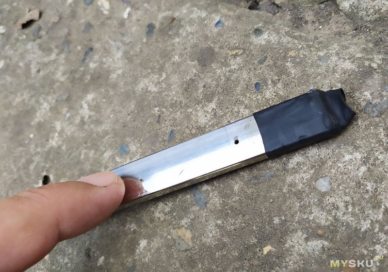 С одной стороны приварен быстросъем (капли сварки присутствуют), поверх натянута термоусадка,