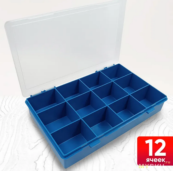 Первой покупкой, для наведения порядка в хранении винтиков/болтиков, был сдвоенный бокс. Выходило дешевле одного, но большего размера. После снижения цены был приобретён и он.