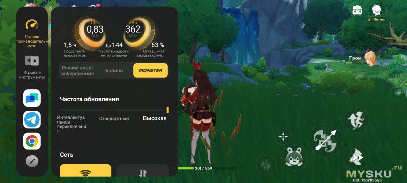Присутствует множество геймерских функций, доступ к которым открывается через специальную панель во время игры. Там можно менять режим производительности, частоту обновления, скорость отклика и приоритетную сеть. За три опции отвечает непосредственно чип Q1 – улучшение картинки, повышение разрешения и интерполяцию кадров.