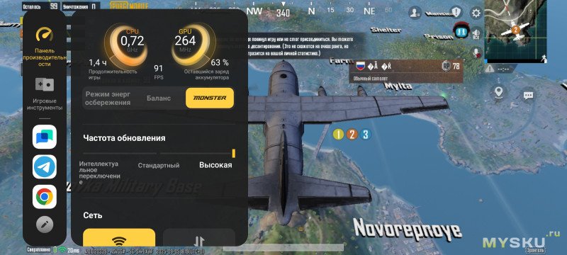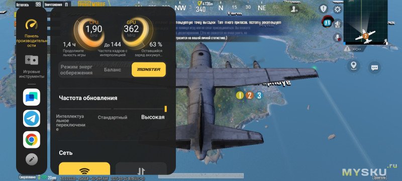 Есть возможность активировать продвинутую вибрацию, оптимизировать звучание, исключить случайные нажатия, задать приоритет частоты кадров перед разрешением, настроить управление, активировать режим защиты зрения, играть при выключенном экране и запускать сторонние приложения в окошках прямо из игры. «Киберспортивный режим» отключает звонки, уведомления, создание скриншотов и изменение яркости, а также адаптирует частоту кадров к нагреву телефона.