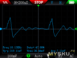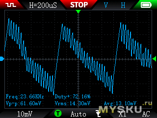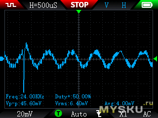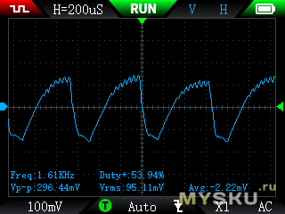 Пульсаций низкие, вч порядка 20мВ, нч в рамках заявленной мощности до 60мВ, иголок нету: