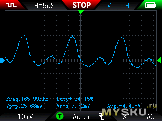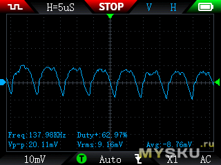 ВЧ пульсации, для удобства сравнения развертка везде одинаковая, 2А немного выбивается, и форма пульсаций там не вполне стабильная