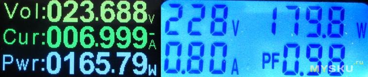 Перегрузочная способность — разогретый за час на номинальной мощности в 150Вт при напряжении ~220В отдает до 10.9А (~200Вт) по крайней мере в течении минут — на 3А выше заявленной, при 11.0А уже через несколько секунд отключается.upd. Поэкспериментировал на тему поднятия напряжения до 24В.