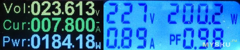 Максимальный ток 7.8А ~ 185Вт, дальше срабатывает защита, это ниже, чем было при 19В.