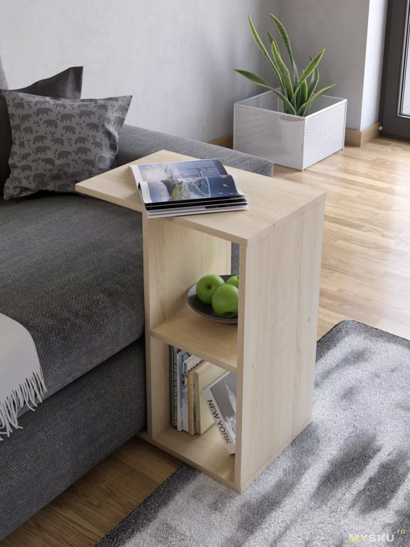 Столики бывают разные и делятся по сфере применения (обеденные, рабочие, интерьерные), ну или по типу конструкции (трансформирующиеся, складные, приставные) и материалу изготовления (дерево, стекло, МДФ). А бывают просто приставные столики. Или прикроватные. Ну или придиванные. Которые к дивану подставляешь и сидишь, хомячишь с них бутерброды, да чай пьешь. Вот именно такой и сегодняшний герой обзора. Просто столик.