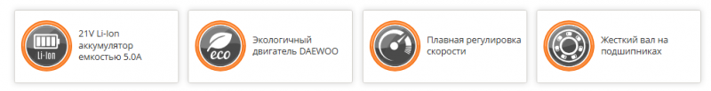 Аккума хватает минут на 40 с диском. С леской — минут 30, потом обороты проседают из-за падения напряжения, и эффективность падает.