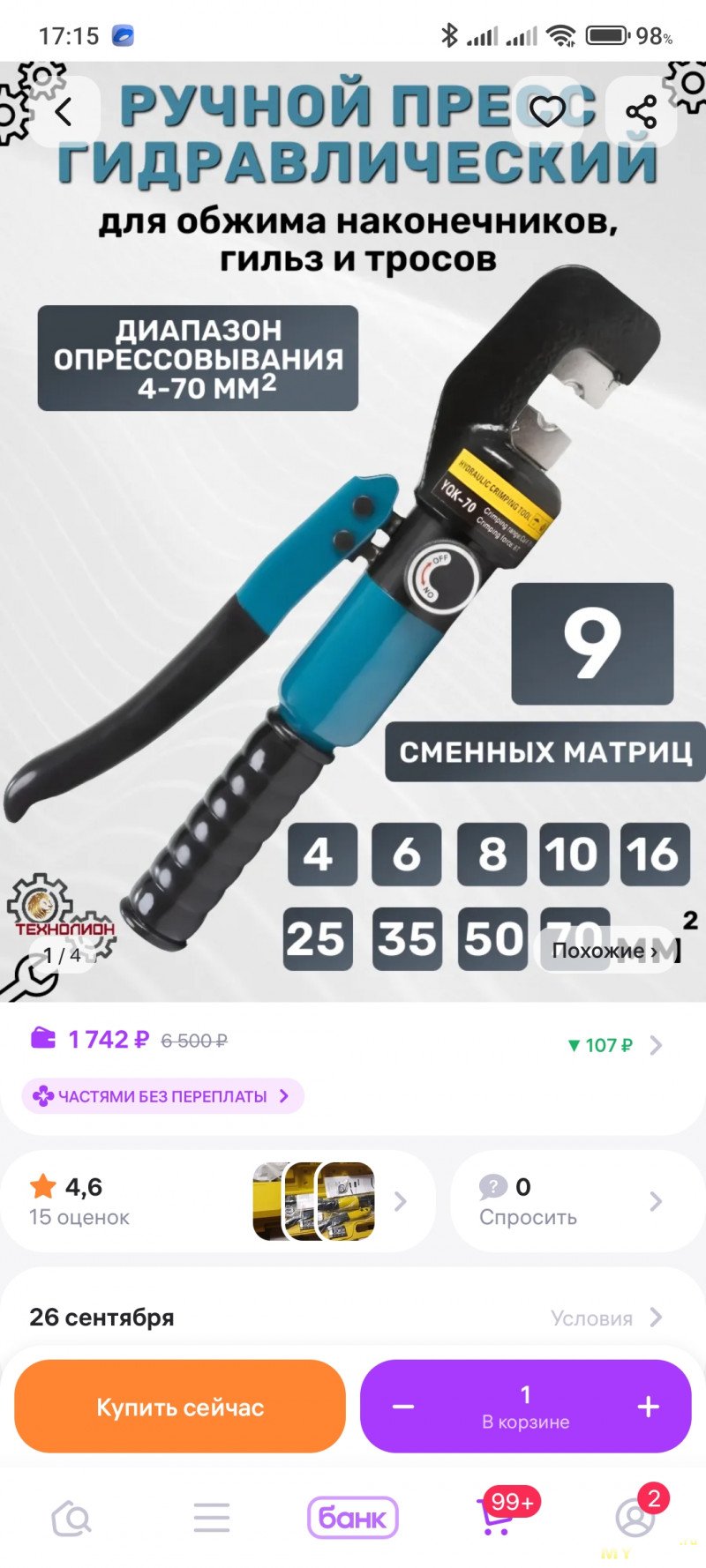 Но да, это на производстве. А в быту действительно больше 16кв. мм. мало кому нужно. А для 16кв. есть ручные клещи вдвое дешевле обозреваемого пресса.