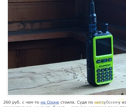 4) По результатам — приём отличный. Помех (ощутимых) нет, если не считать шипение совсем негромкое. Голос слышно с интонациями, тоном. Громкая связь на смарте «сливает» точно, там есть дефекты звуков, а у рации этой зеленой нет подобного (насчёт 2-й рации не знаю, сказали слышно меня хорошо, помех не было).