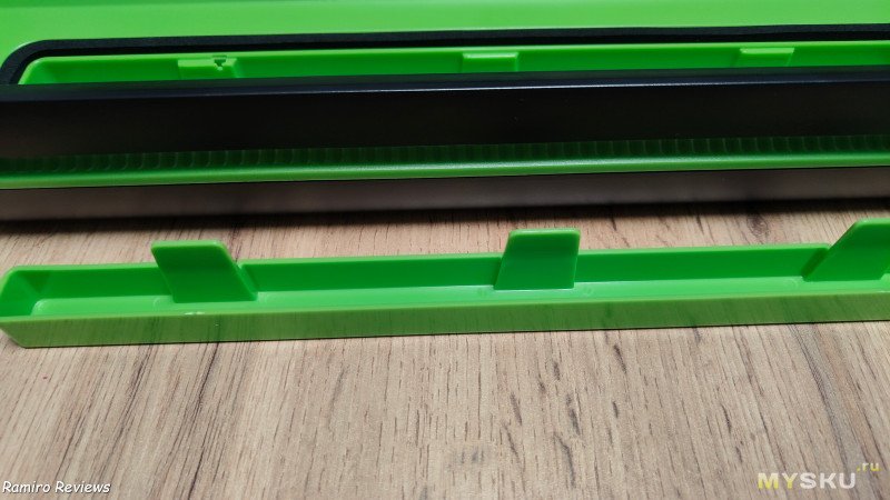 Тут есть камера, закрытая силиконовыми прокладками и нагревательная полоса. Попытка как то выбрать вакууматор по мощности, типу насоса и тому подобному ни к чему внятному не привела — информация от продавцов и производителей недостоверная или неполная. Платить больше за дизайн желания не было никакого. Поэтому если нужен вакууматор, то я бы брал самый дешевый за 700р и не углублялся бы в тему.