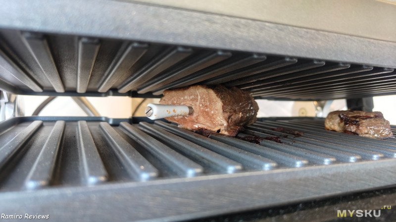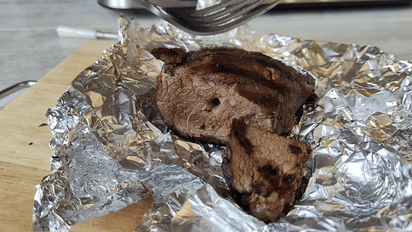 Но это не беда. Разогреваем гриль и закидываем мясо туда. Так как у меня дети, выставляем well done и прожариваем до 71 градуса, после даем мясу отдохнуть минут 10 в фольге.