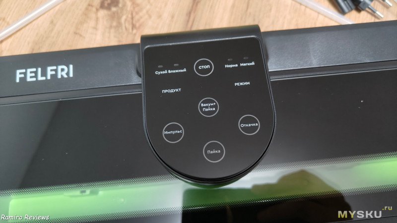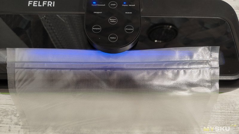 Вторую партию я вакуумировал, как только понял, как переключиться на влажный режим. Надо жать по самой надписи.