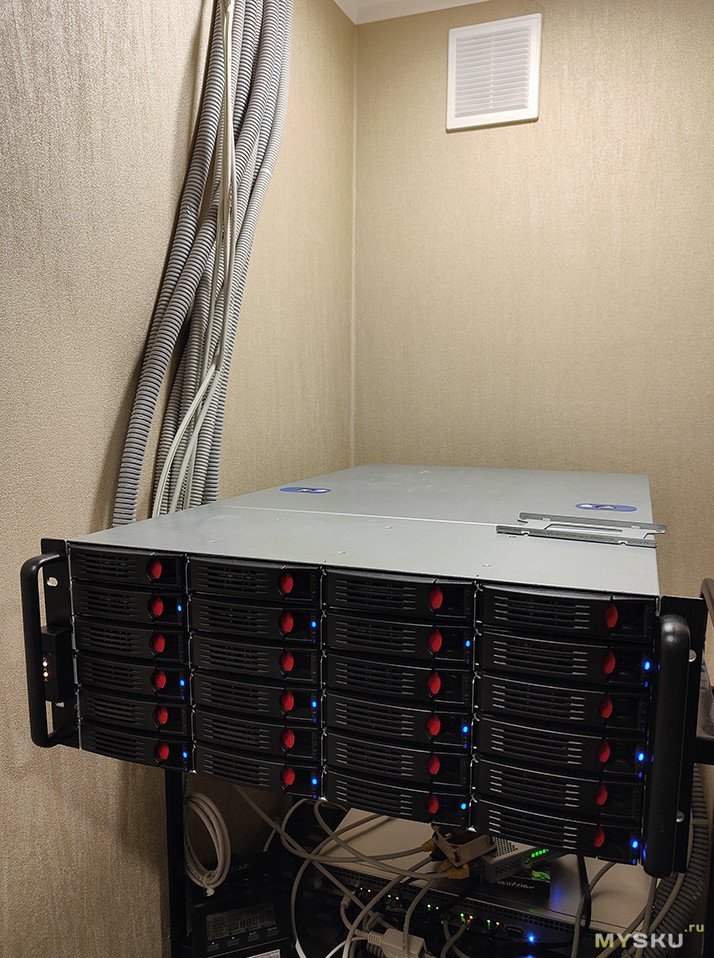Корпус ExeGate Pro 4U660-HS24. Классный корпус, если надо очень много жестких дисков и места хватает подо всё.