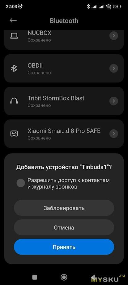 С сопряжением никаких проблем не возникло. Наушники сразу же после извлечения из кейса верно определились смартфоном и, запросив разрешение на доступ к контактам и звонкам, успешно сопряглись с телефоном. При этом кодек, выбранный системой — ААС.