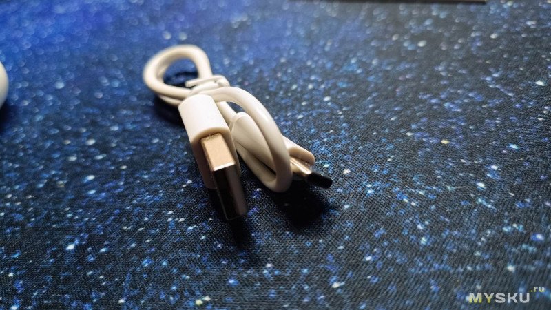 Две пары силиконовых амбушюров не запасные, а другого размера — чуть меньше и чуть больше уже установленных на наушники. Зарядный кабель коротенький с Type-C разъёмом.