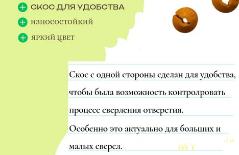 из плюсов: не портит материал вообще, когда достигает нужной глубины сверло свободно вращается на втулке с подшипником, а ограничитель неподвижно стоит на материале силиконовым кольцом