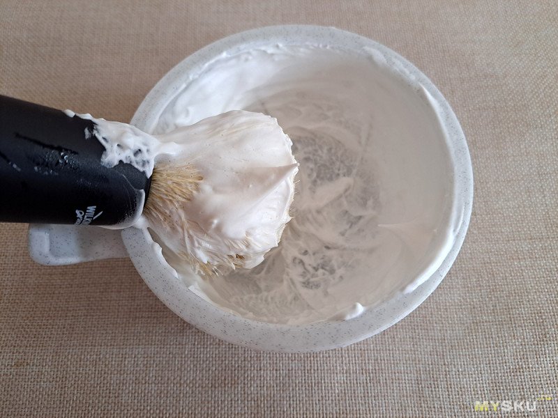 Пришло время опробовать мыло в деле (я купил помазок от Wilkinson Sword и специальную чашу для бритья).