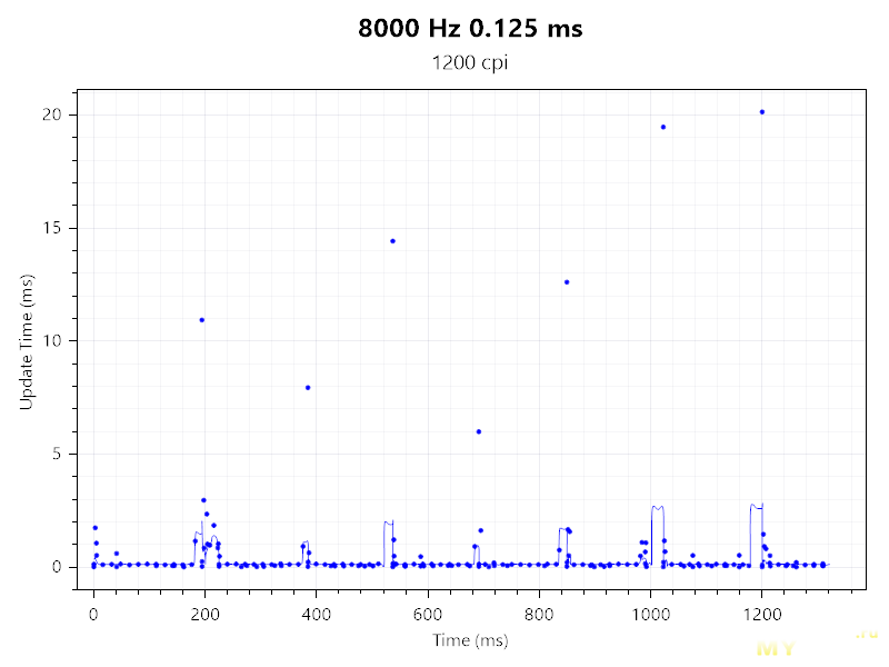 В этих тестах проверим частоту опроса и отклик.Подключение по радиоканалу, разрешение установил 1200 DPI.