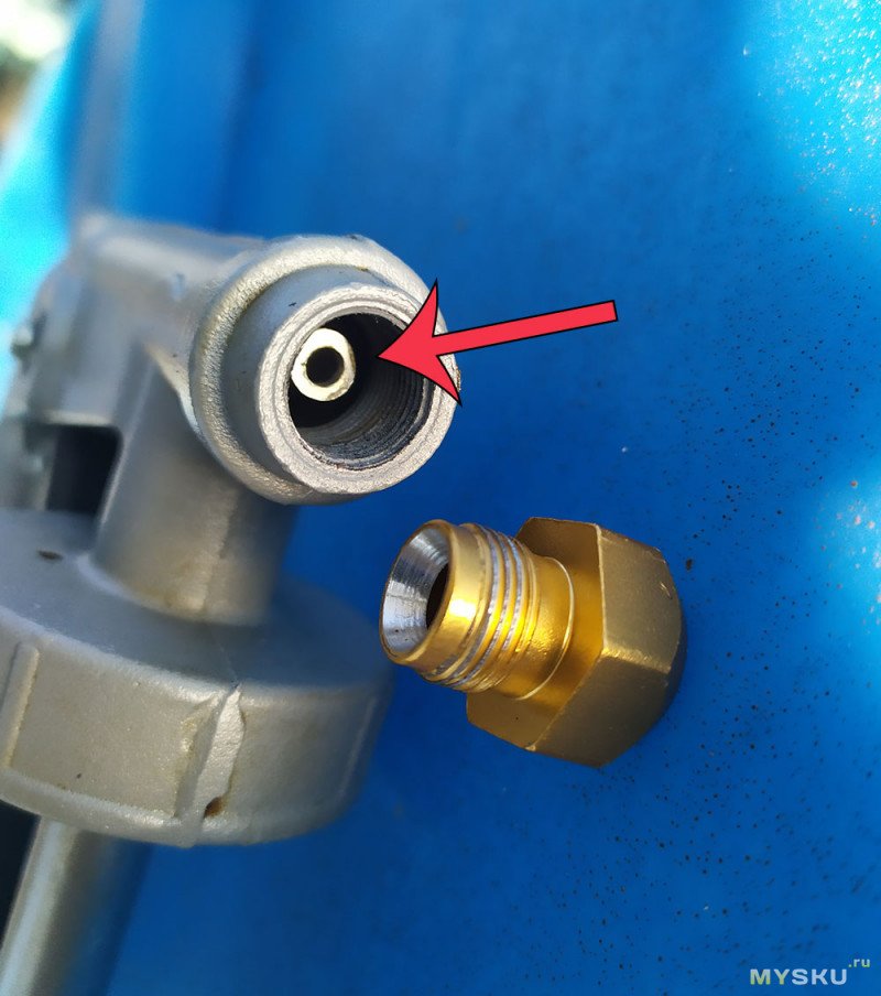 Если снять сам наконечник с трубки, в таком варианте работает более-менее сносно, но с очень малым расходом (давлением не увеличивается)- «Такой хоккей нам не нужен!» ©