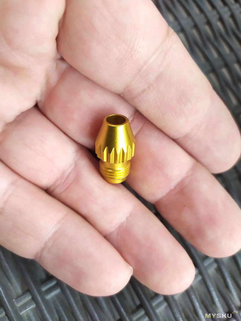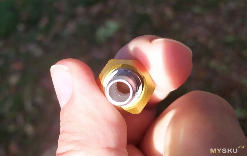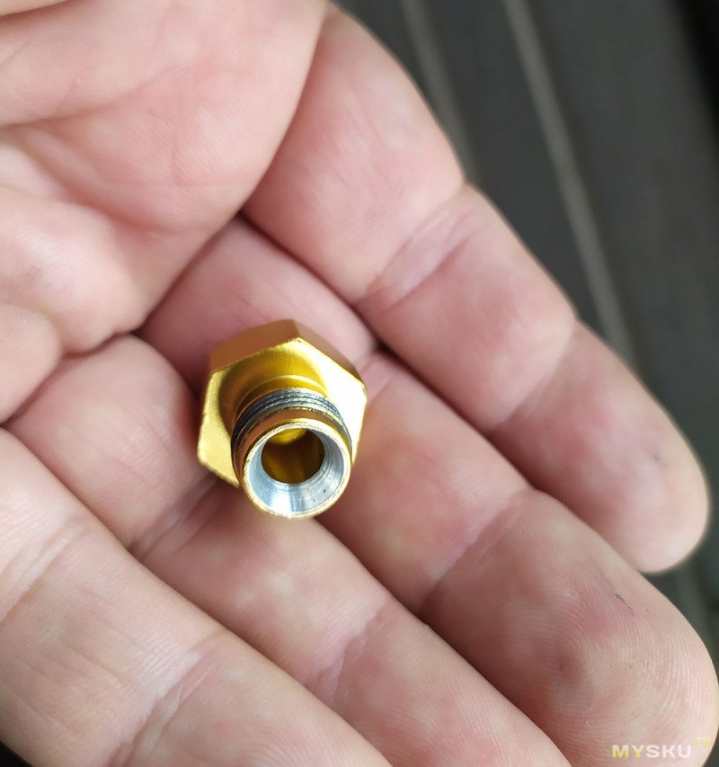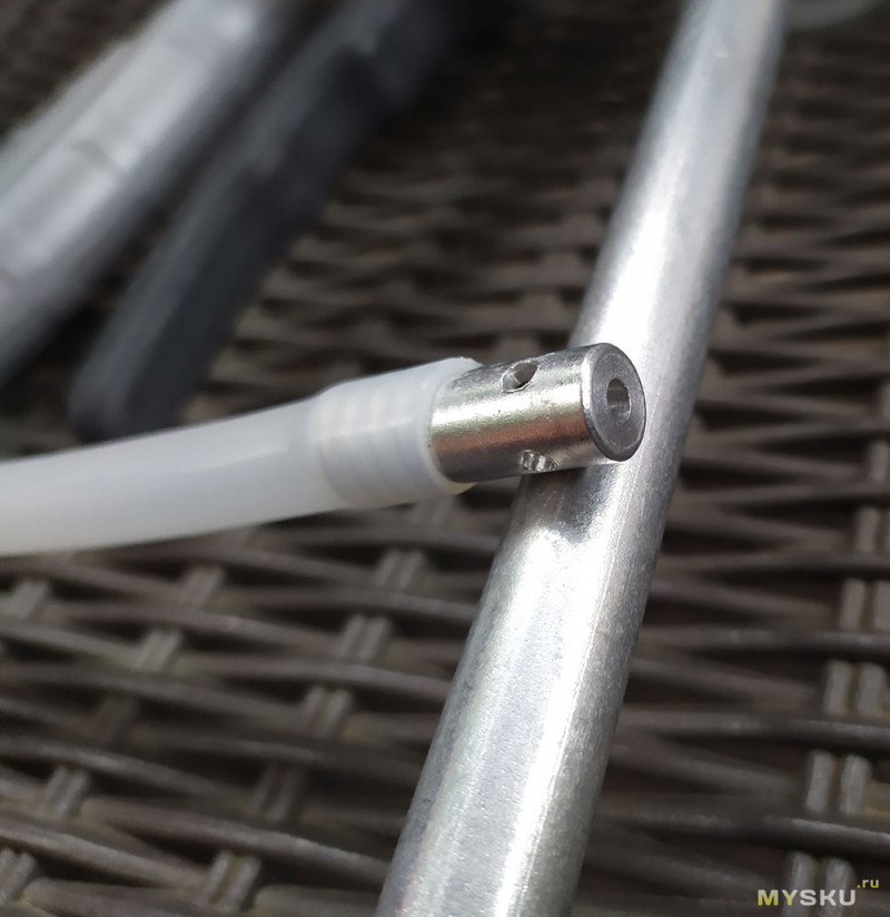 Насадка, как было видно выше на фото, легко накручивается вместо основного сопла.Тоже с обеих сторон алюминий. Материал трубки похоже термостойкий, тактильно похож на фторопласт