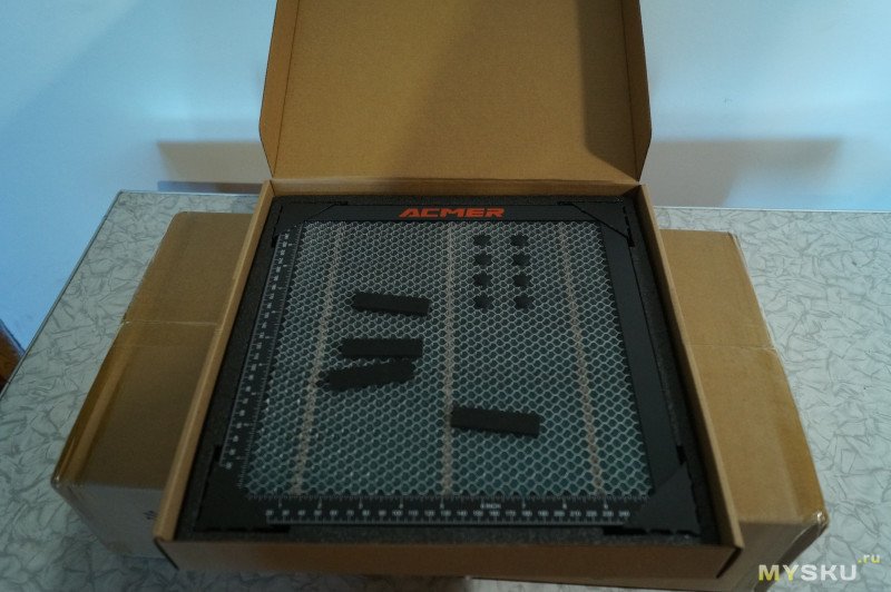 Так как область работы лазера 300*300мм, то мне прислали стол размером 300*300мм.