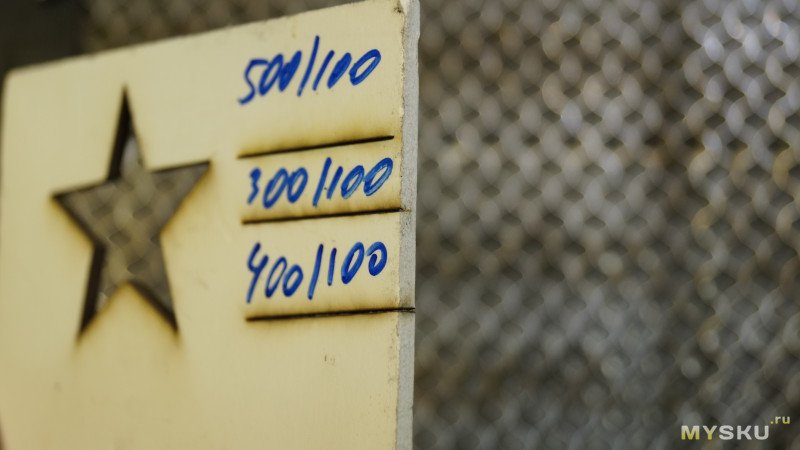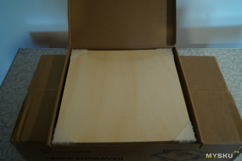 Еще для тестов мне прислали 6 листов фанеры толщиной 3мм и размером 300*300мм. В дальнейшем часть проектов в обзоре будет сделана из этой фанеры.