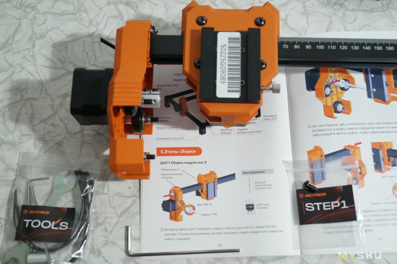 В инструкции подробно по шагам описан процесс сборки. Сборку шага 1 показал на фото.
