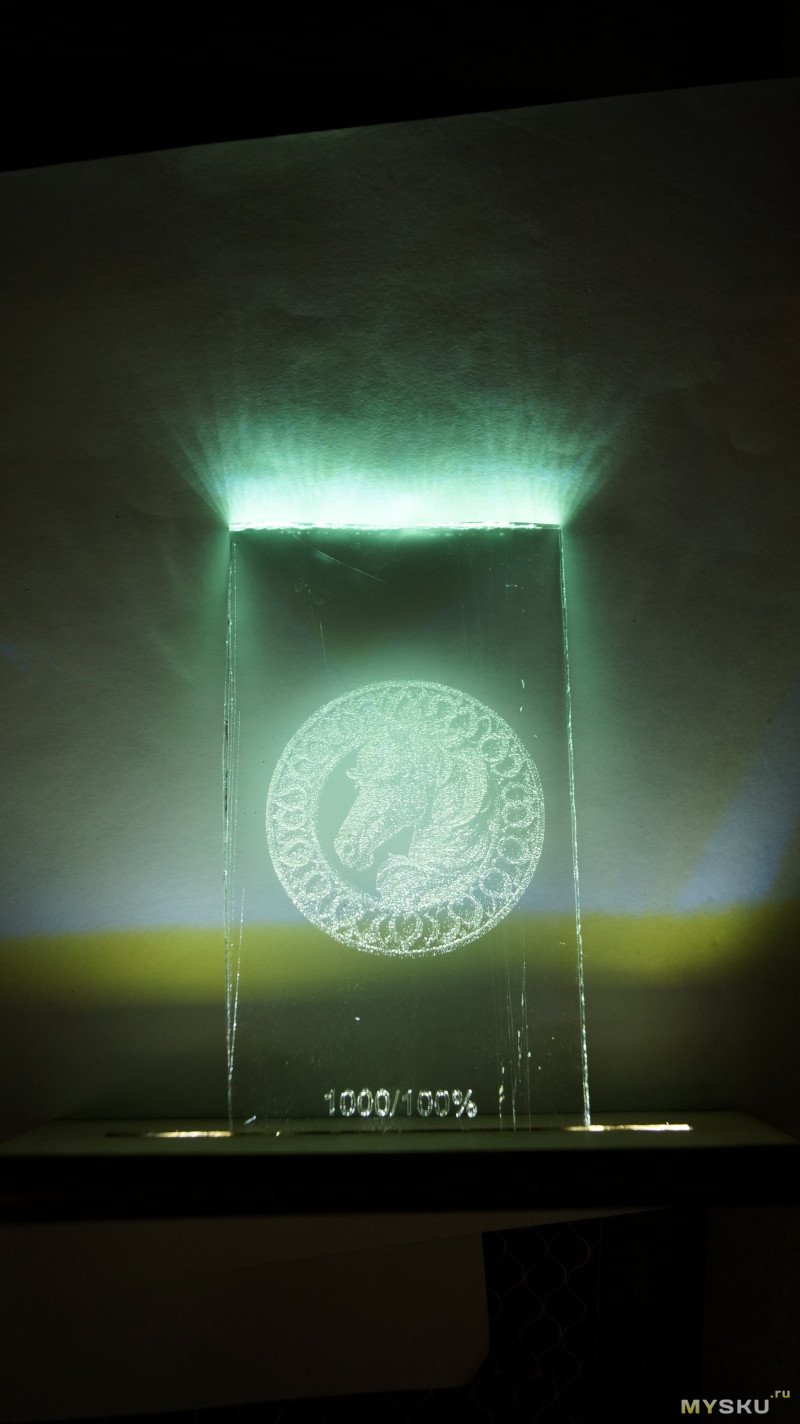Картинка неплохо видна при общем освещении и хорошо видна при торцевом свете из подставки.