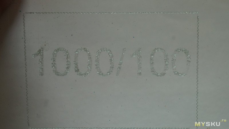Цифры 1000/100 на области стекла без покрытия видны, но гравированы не четко, с пробелами. Они как бы выбиты и выбиты не во всех точках.
