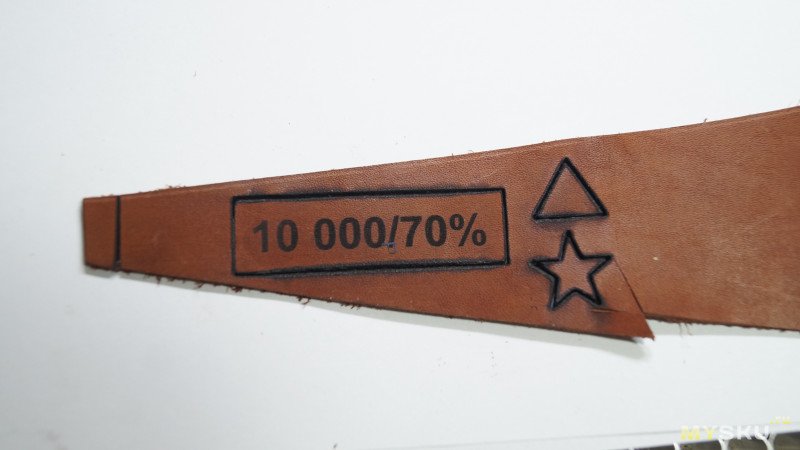 То есть лазер с головой 7 ватт отлично гравирует кожу, но режет ее не очень. Но с тонкой справляется.