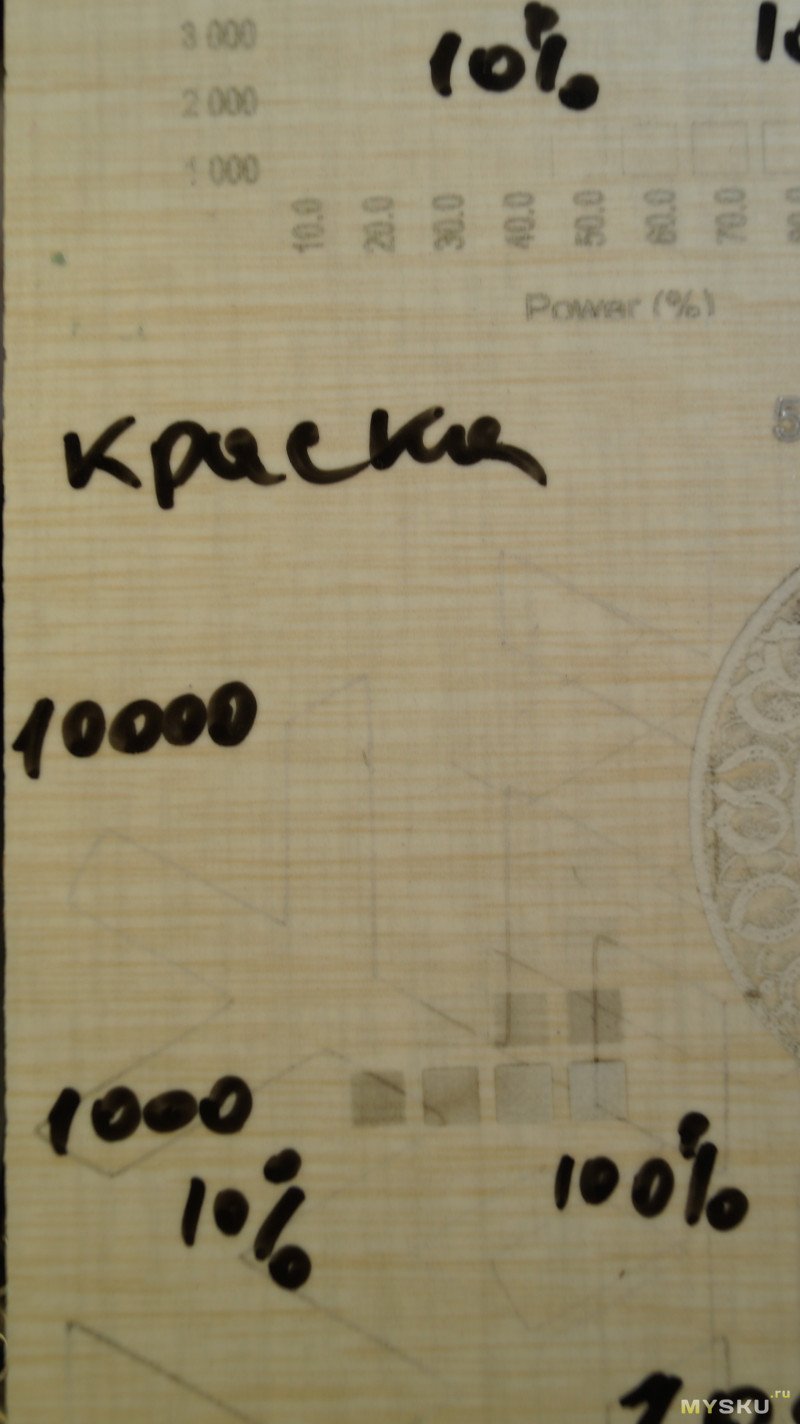 Вроде бы параметры гравировки были 10 000 / 70%, но это не точно.