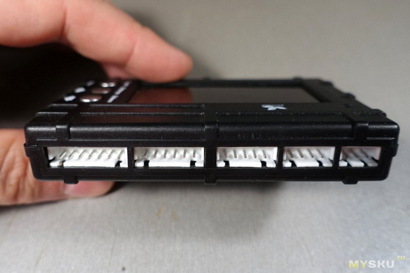Разъёмов и проводов в комплекте нет, так как приборчик предназначен в основном для модельных аккумуляторов, а там уже из аккумулятора торчат провода с такими разъёмами, но, разумеется, его можно использовать и для любых других аккумуляторов: подходят белые и чёрные разъёмы с шагом 2.54 мм.