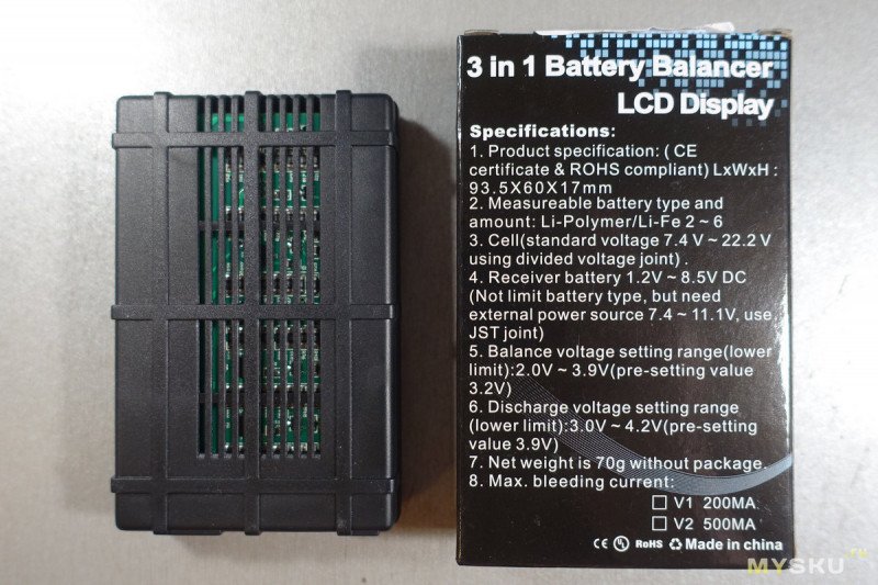 Этот маленький приборчик подключается ко всем ячейкам сборок аккумуляторов от 2S до 6S, измеряет и отображает напряжения на всех ячейках одновременно, умеет балансировать ячейки и разряжать их для безопасного хранения аккумуляторов.