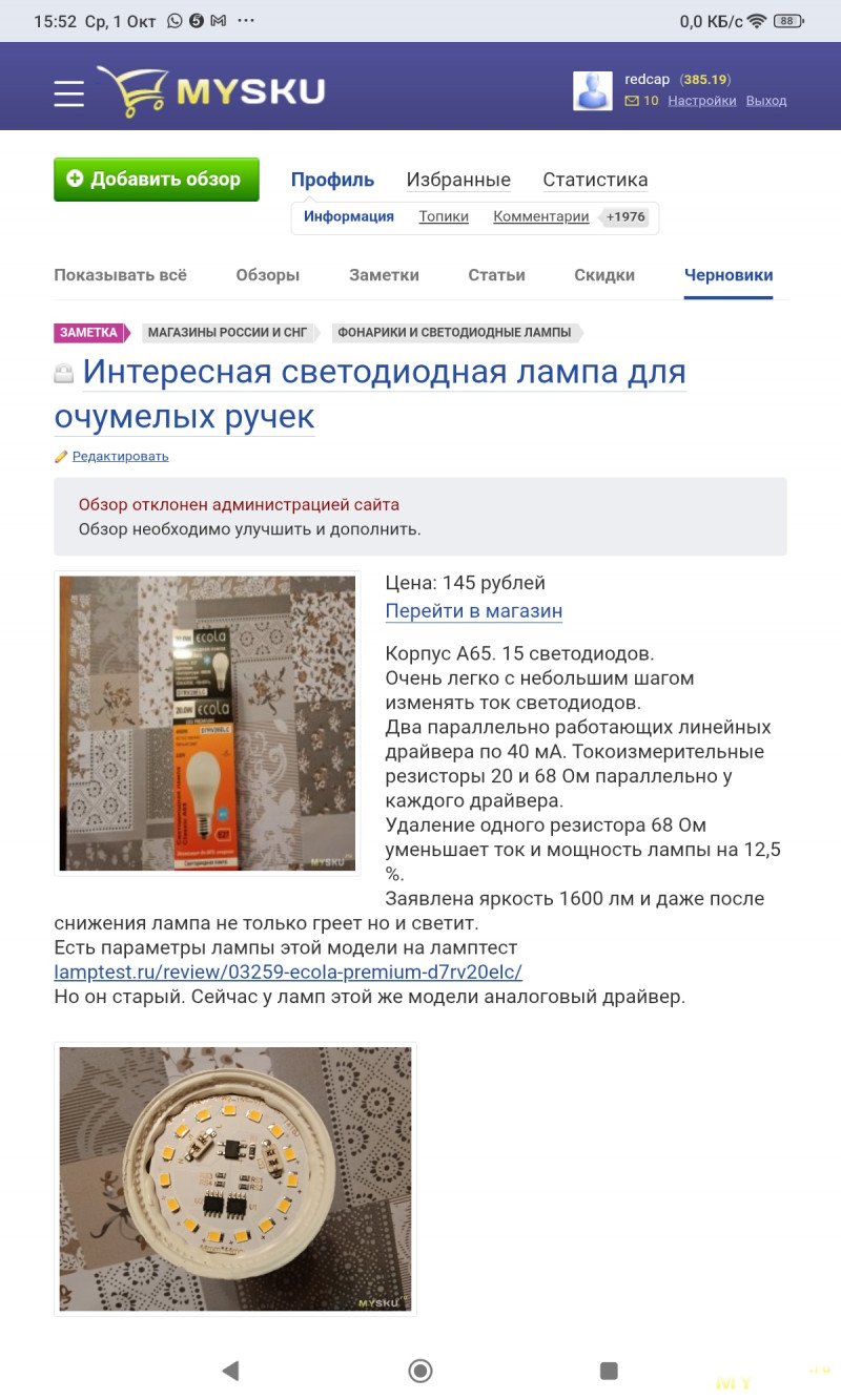 ну добавить хотя бы картинок для идентификации этой модели/партии (где-нить на лампе дата есть). ибо в следующей запросто может быть иначе. че-нить еще замерить — потребление там, порог пульсаций.