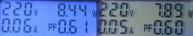 Потребляемая мощность 8.5/7.9(после прогрева)Вт
