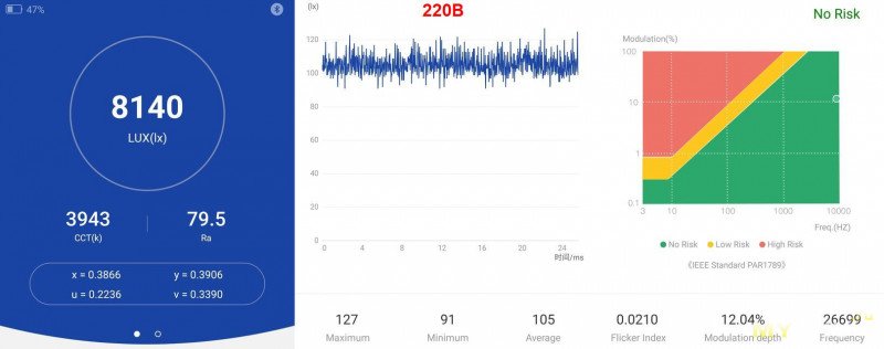 Какие то странные пульсации при 220В. Это не монитор светит? :)