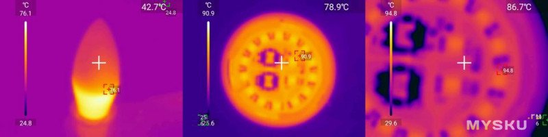 Вообщем основные плюсы — импульсный драйвер с результатом в виде достаточно широкого диапазона напряжений (из-за чего и были взяты) и умеренная температура диодов, в остальном типичная лампа средней наглости несоответствия мощности.