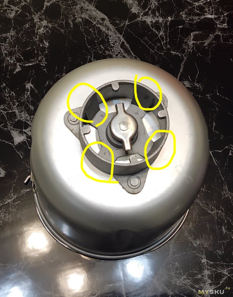 Купила себе какой то редмонд. А, чтобы столь любимое ей круглое ведро подошло — пришлось в силуминовом стакане протачивать направляющие рёбра.