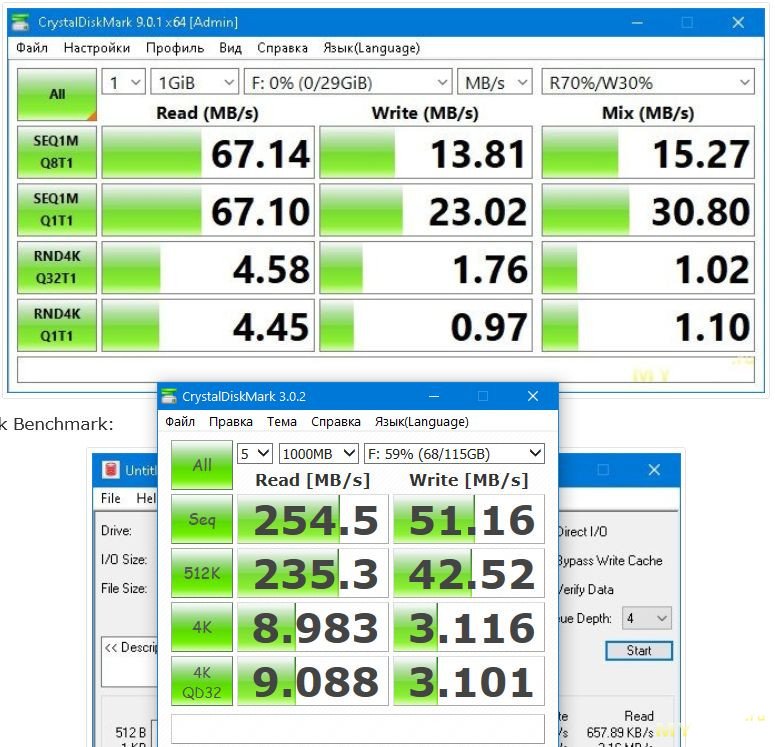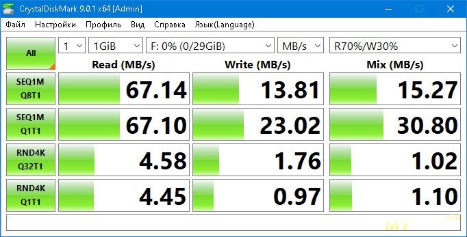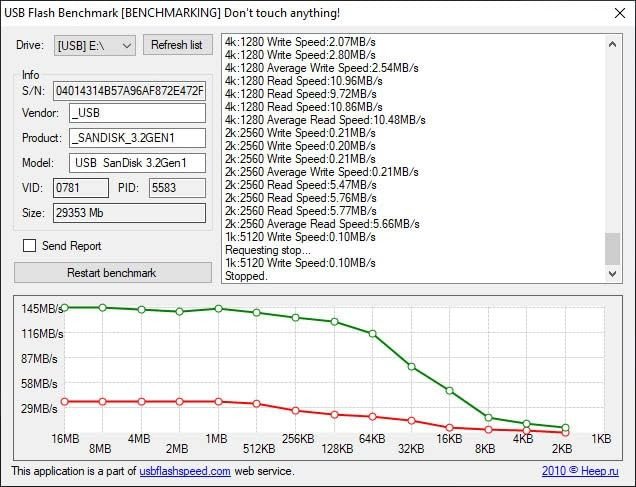 Хотя с флешкой итак уже всё ясно, но решил прогнать обычный набор тестов.