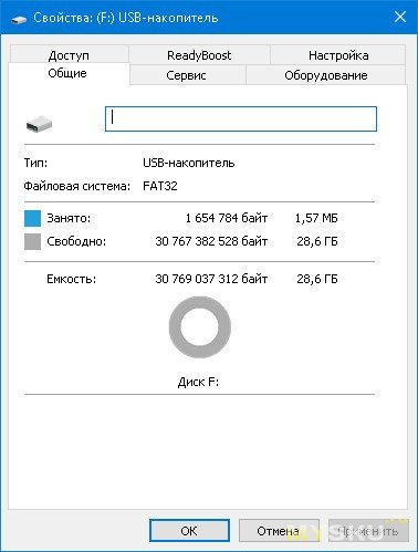 Доступный пользователю объём 30.769.037.312 байт, или же 28,6 Гбайт (и специально для зануд в единицах СИ: 30,77 Гбайт или же 28,66 Гибибайт).