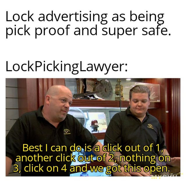 Я же говорил про то, что вероятность внезапного отказа механического замка «в обычной жизни» сильно ниже. У него нет систем, от которых он зависим, он простой как валенок и ты невольно каждый раз его диагностируещь при использовании — как легко он крутится, не подклинивает ли, нет ли посторонних хрипов и хрустов.