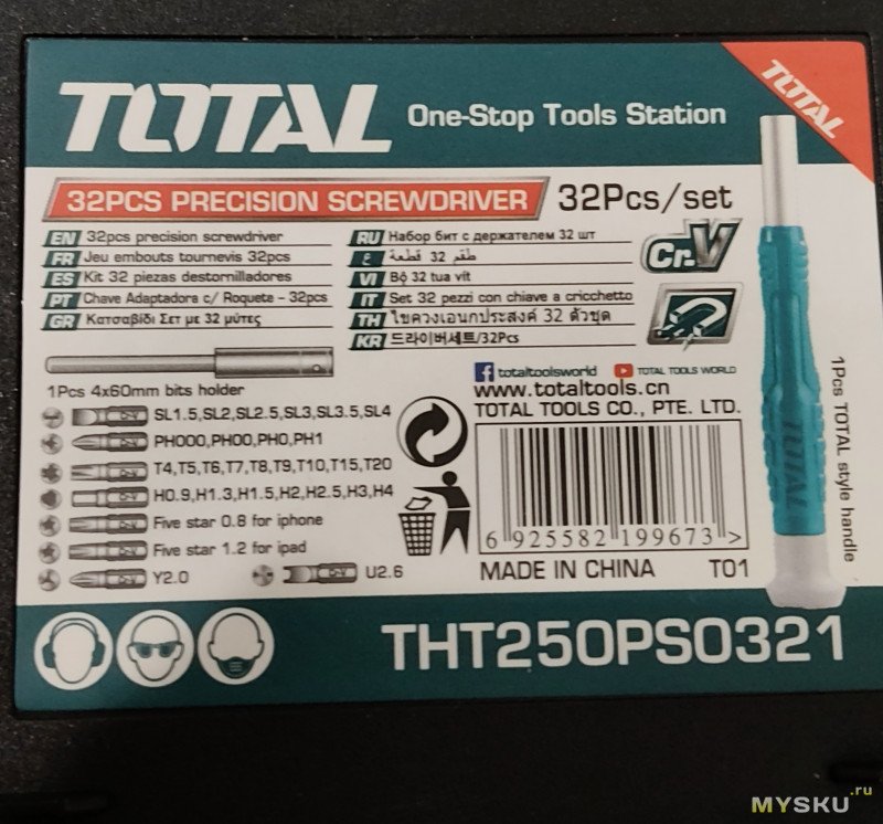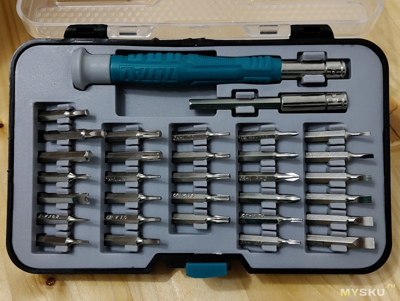 Пока разбирал ножи складные (раз, два), понял (не в последнюю очередь благодаря комментариям), что надо набор с битами срочно, и в 1-ую очередь посмотрел что есть у «Total», по пунктам: