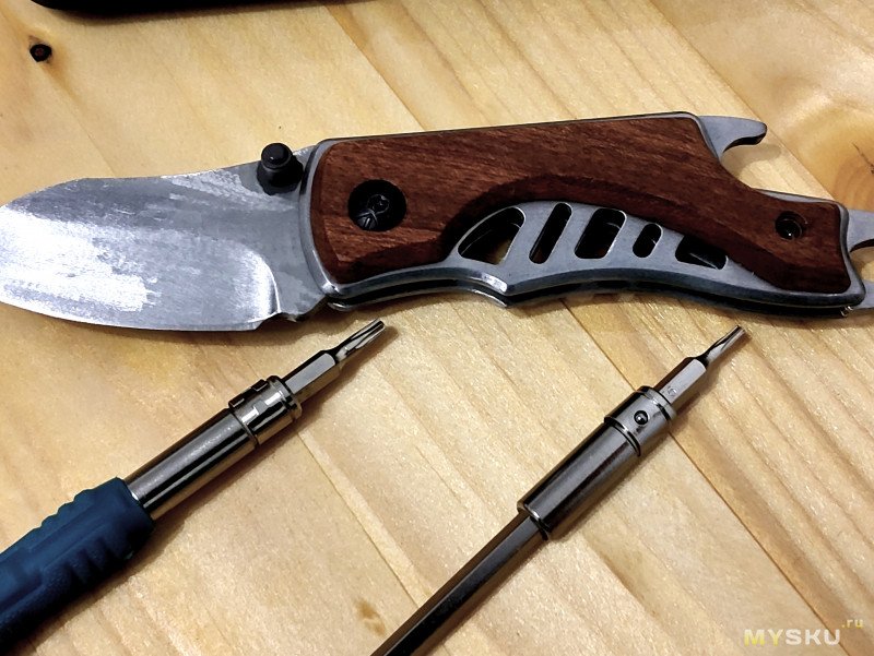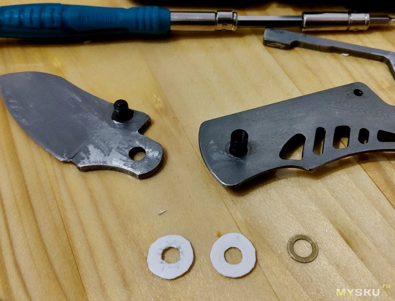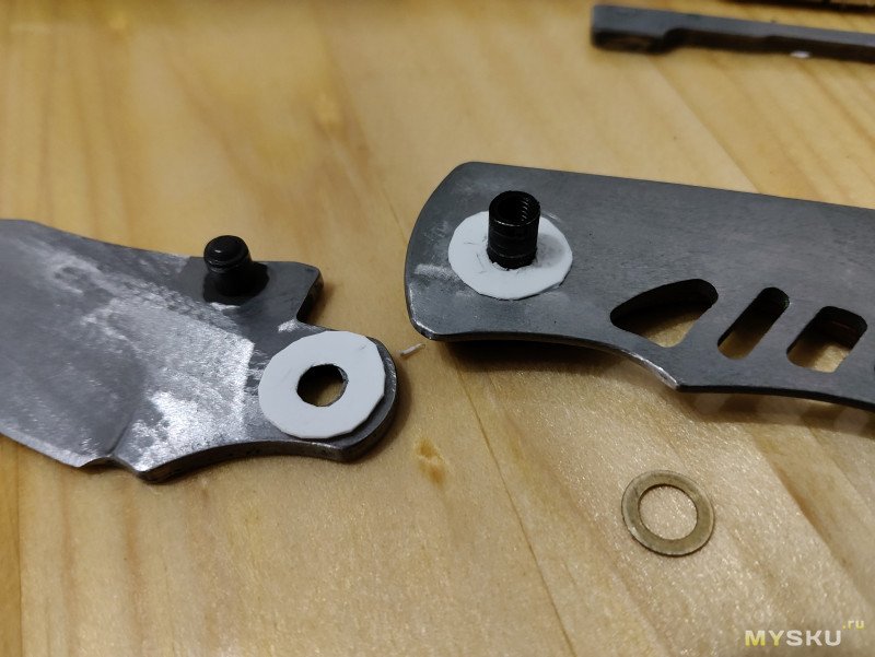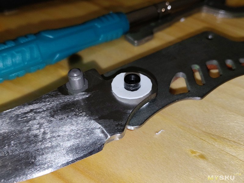 Хотя 100% цели не было достигнуто, но результат есть — ощущения при открытии клинка уже другие (но чуть скрежет есть от металлической шайбы той):