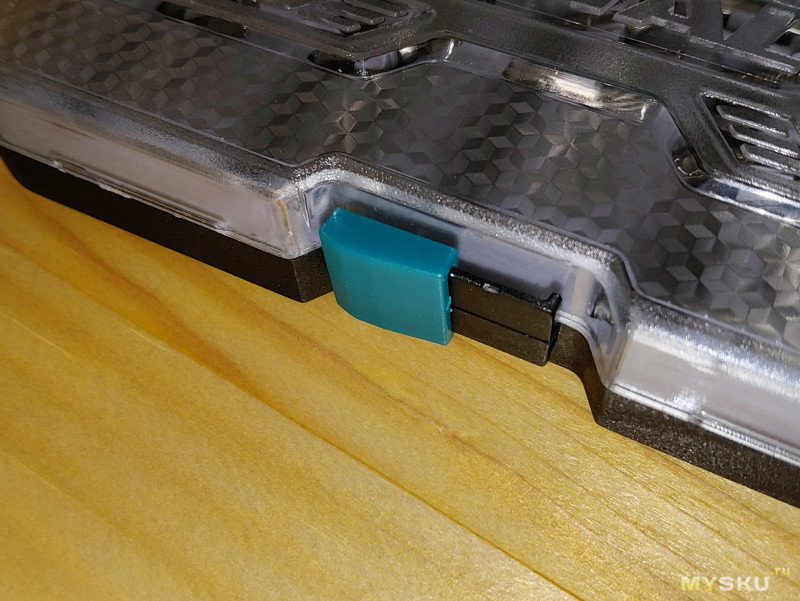 Петли крышки — пластик… С одной стороны это не так надёжно, как стальные стержни, но имхо, этот набор для аккуратной работы, и этот кейс (в отличии от набора с битами Vira) не планируется хранить в ящиках с электроинструментами и молотками: