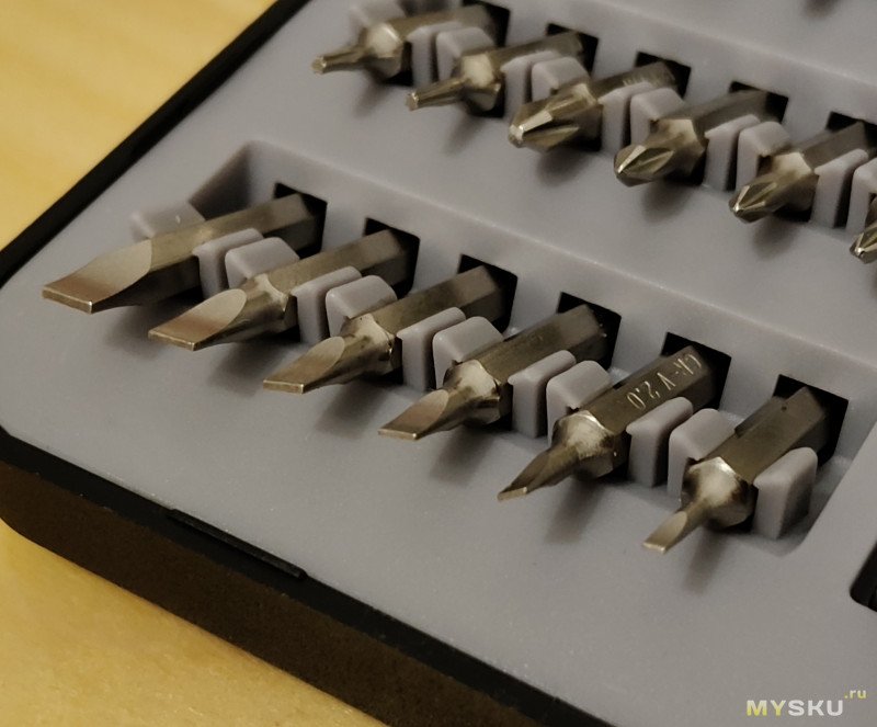 Для совсем мелких винтов (проектор, другая электроника) — у меня теперь есть нормальные биты, а то вечно подпиленной плоской отверткой драконил грани в пазах: