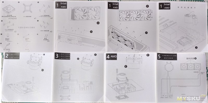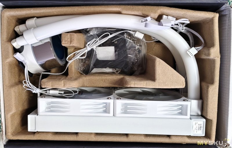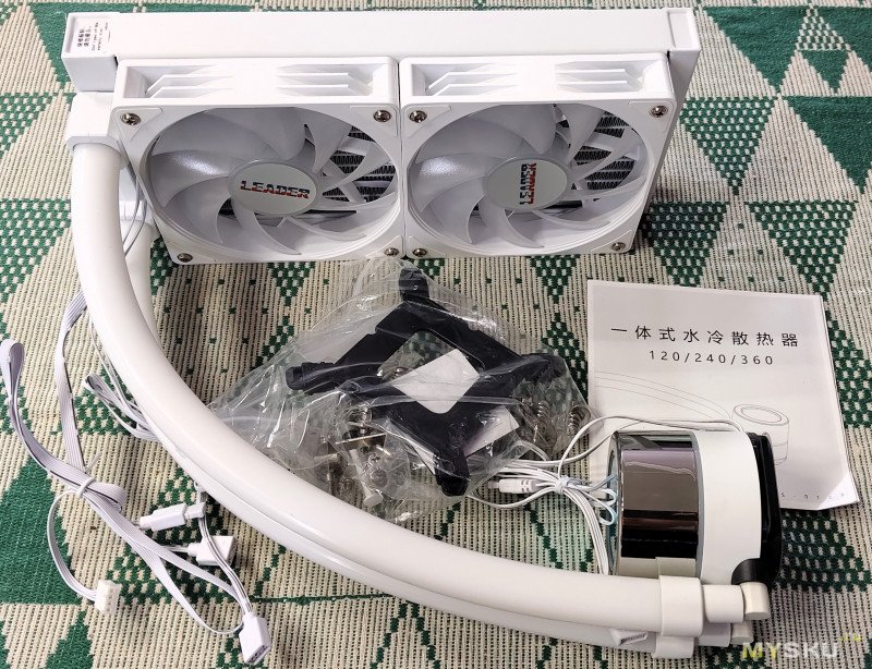 Комплектация — водянка, крепления под все современные сокеты INTEL/AMD и инструкция по установке.